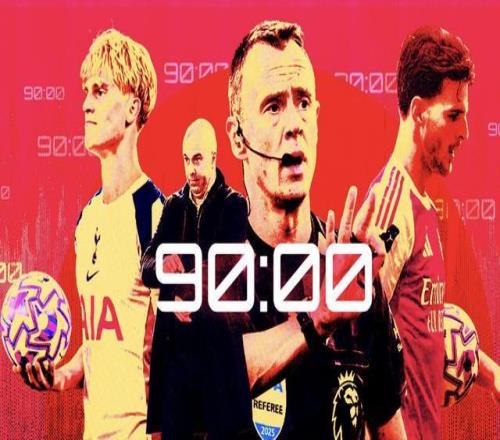 英超本赛季平均每场持续100分36秒,但净比赛时间只有54.7%