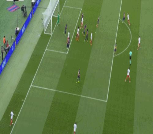 稳住局面的巴萨再展开猛烈攻势,第31分钟,巴萨获得禁区左侧前沿任意球机会,拉什福德操刀主罚大力兜射,BOOM的一声皮球被横梁挡了出来。第38分钟,赫罗纳反击又获得单刀,只是他们把握机会能力实在太差,希尔超级单刀打了飞机。易边再战巴萨继续加强攻势,然而全场爆射31脚的他们迟迟未能把握机会,第50分钟,费尔明禁区弧顶左侧推射被门柱挡出。第70分钟,拉什福德禁区内抢点疑似被雷斯推倒,但主裁没有表示。补时阶段巴萨主帅弗里克不断向主裁抱怨,结果领到红卡一张被罚下场。弗里克这一“祭天”,巴萨2分钟后就抓住机会,补时最后1分钟,巴萨中场中路转移到前场右侧,德容插上突入禁区倒三角回传门前,替补登场没多久的阿劳霍小禁区前沿抢点铲射,皮球飞入球门右下死角,巴萨2:1压哨绝杀赫罗纳。