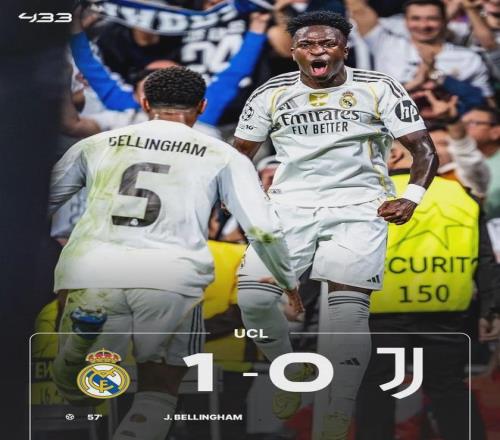 本轮欧冠的一场焦点战,银河战舰主场对阵尤文。上半场,两队互交白卷,易边再战,维尼修斯低射中柱,贝林厄姆补射破门,这个进球也是全场比赛的唯一进球,最终,皇马1-0击败尤文,取得欧冠3连胜。