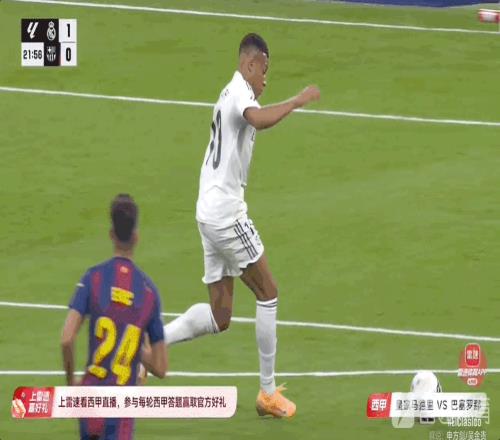 雷速体育10月26日宣 西甲第10轮,西班牙国家德比,皇家马德里坐镇主场伯纳乌迎战巴塞罗那。比赛第22分钟,姆巴佩接贝林厄姆直塞先拔头筹。