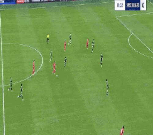 直到第35分钟,浙江队才完成了本场比赛的第一次射门,卡列洛30米开外突然起脚远射,皮球被蒋光太挡了一下,稍稍偏出。