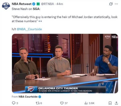 加拿大巨星史蒂夫-纳什:其实你们可以看看,从数据上来看,亚历山大跟迈克尔-乔丹已经非常接近。