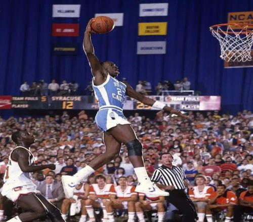 在NBA,每支球队都会有一个核心,他们会围绕这个核心来布置战术,同时这位球员到最后时刻会拥有绝大部分的球权。但在NCAA这个联赛,球星的主义很少会在比赛中出现,他们更依赖团队篮球,通过许多大量配合来取得比赛的胜利。这时就会让全队的比分更加接近,数据特别出色的球员也会少之又少。特别是在迪恩.史密斯教导下,在篮球名校北卡严格的学院派风格下,乔丹绝不会越权乱打,他只会不断雕琢自己。花费大量时间来训练处理球的技术。